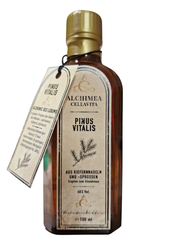 Kiefernadel-Extrakt 100mlNaturstoffAus Wildsammlung in Deutschland.Mit frischen Kiefernadeln & Sprossen.Für viele Anwendungen.Hergestellt & abgefüllt in Deutschland.Alkoholischer Auszug aus frischen & getrockneten Kiefernnadeln, sowie frischen Kiefernsprossen. Die Kiefernadeln & Kiefersprossen stammen aus Wildsamlung in Deutschland. Die schöne Blauglasflasche beitzt einen Tropfeinsatz. 20 Tropfen entsprechen ca.1ml.Zur Herstellung des Extraktes: Der Extrakt wird mittels Ultraschall-Extraktion gewonnen, bei der keine Erwärmung stattfindet. Die Pflanzenteile werden schonend verarbeitet, wodurch die Inhaltsstoffe gut erhalten bleiben.Zutaten:Alkoholisch/wässriger Auszug 1:5 aus Kiefernadel- & Sprossen, Reinstwasser, Weingeist (Alkoholgehalt Vol. 48%).Zusatzinformation:Der Schraubverschlussdeckel ist mit einer Kindersicherung ausgestattet. Sie lösen diese, indem Sie den Deckel von oben drücken und gleichzeitig eine Drehbewegung entgegen dem Uhrzeigersinn durchführen.